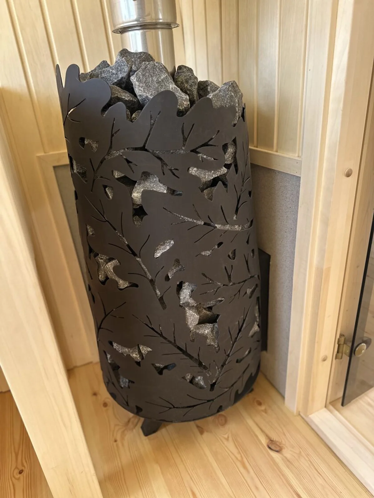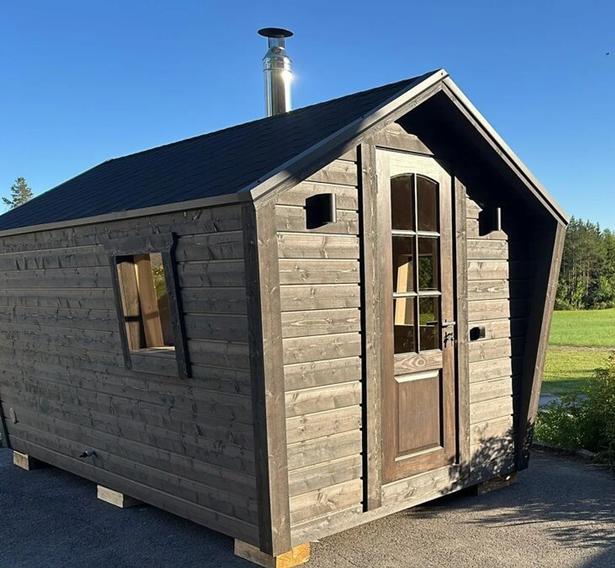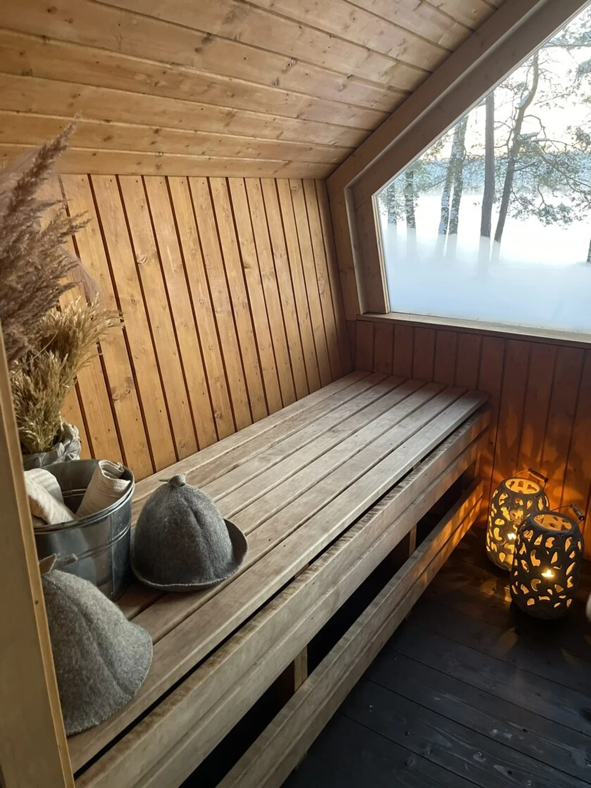 Pēc pasūtījuma veidota piecstūra pirts ar profesionālu karkasa konstrukciju un 100mm siltumizolāciju visu gadu lietošanai. Interjers no premium apses dēļiem, ārpuse no izturīgiem egles dēļiem ar izvēles iespēju krāsu toņiem. Ietver elastīgas plānojuma iespējas ar pielāgojamu krāsns un lāvu izvietojumu, pieejama ar elektrisko vai tradicionālo malkas apkuri.