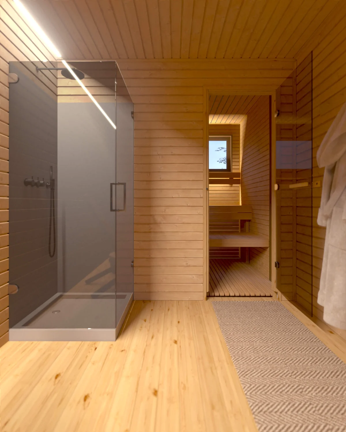 Profesionāla līmeņa taisnstūra pirts jūras konteinerā, pielāgota latviskajiem pirts rituāliem. Ērti sēž 6–8 cilvēki; divi var pilnā augumā apgulties uz 215×80 cm augšējās lāvas. Malkas krāsns ar 60 L boileri, papildus. Pilna siltumizolācija, LED apgaismojums, ventilācija, integrēta duša pērtuvē un plaša priekštelpa - gatava ērtai transportēšanai un ātrai uzstādīšanai mājās, pasākumos vai komerciālos objektos.