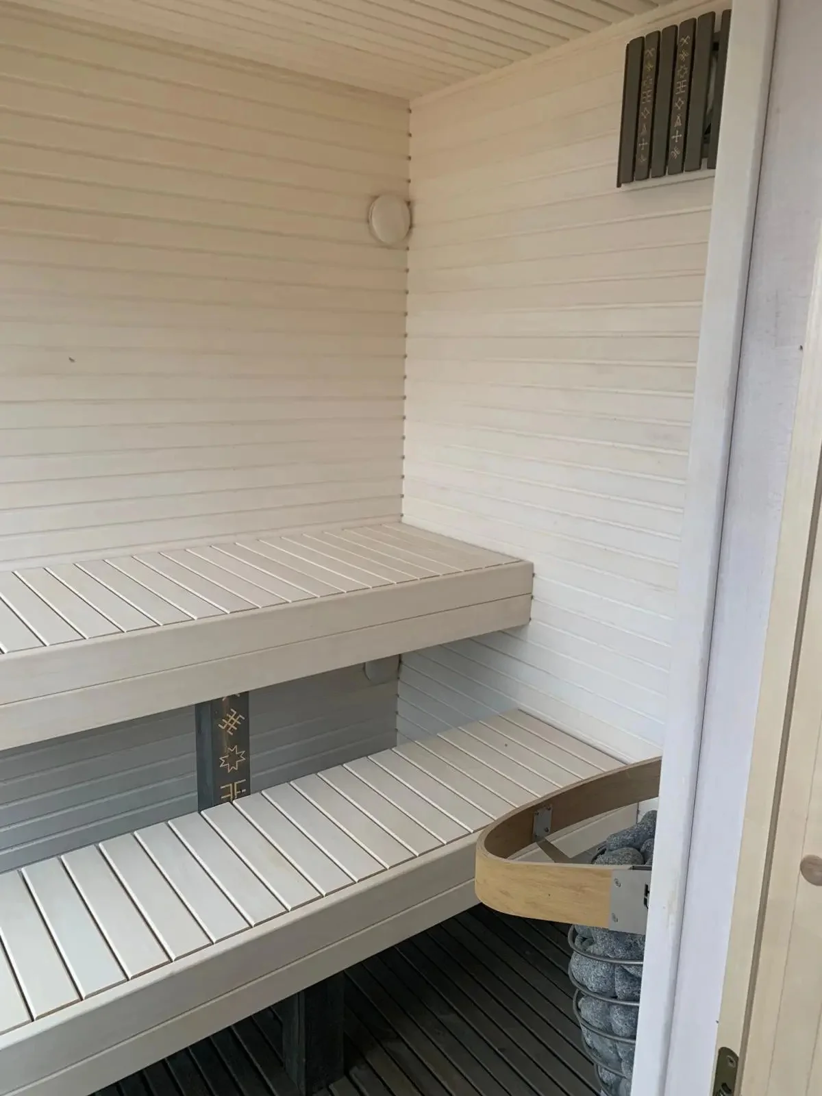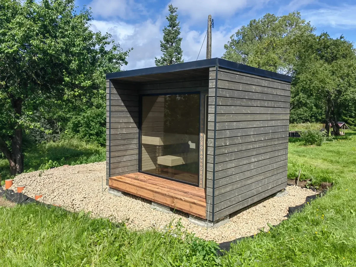 Neliela, mūsdienīga 9 m² pirts, izgatavota no 45x95 mm kalibrēta kokmateriāla ar 100 mm minerālvates izolāciju. Ideāli piemērota novietošanai dārzā vai pie terases. Augstas kvalitātes grafīta apdare, baltināta liepas koka apdare, LED apgaismojums, malkas krāsns un liels panorāmas logs pirts telpā. Jumts segts ar bitumena segumu. Добро пожаловать в уютную модульную сауну 12 м² (3 × 4 м) с тёплой липовой отделкой, мягкой LED-подсветкой и большими зеркально-тонированными окнами - светло и приватно одновременно. Парная с фольгированной изоляцией быстро прогревается и держит тепло, пол с двойной гидроизоляцией и уклоном, а закрытый уличный душ дарит бодрость после сеанса. Стильная графитовая отделка и крыша из металлопрофиля в антраците, печь с нержавеющим дымоходом и продуманная внутренняя/внешняя отделка - всё готово к удобной установке.